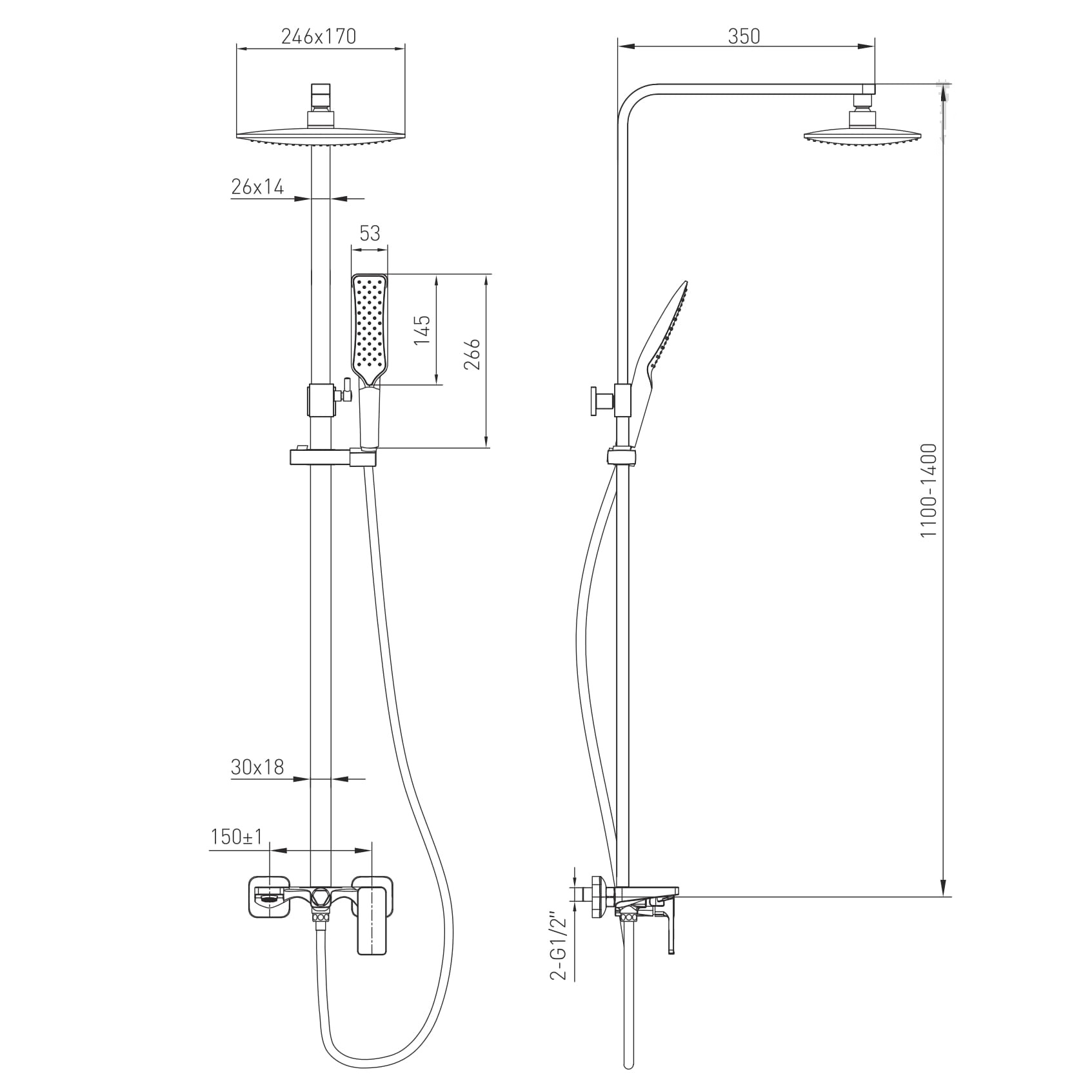 1584.090201 SISTEMA P система душ (змішувач д/ван, верх душ 246*170 мм ABS, р душ 53 мм 1 реж, білі